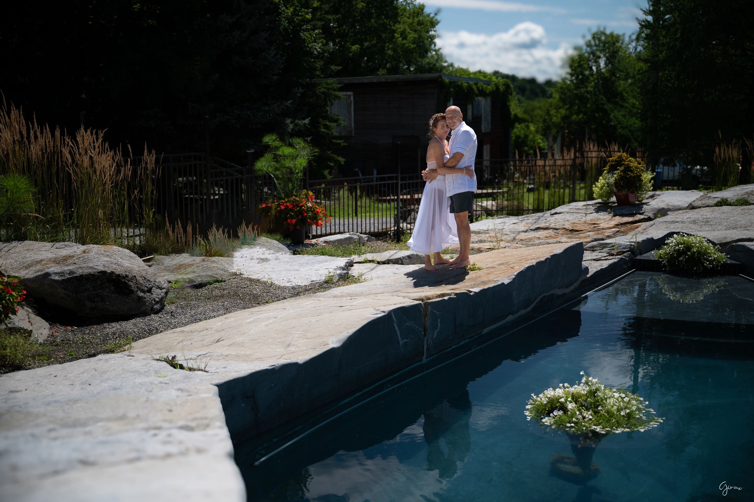 L'union de France et Richard s’est déployée avec une collaboration créative au cœur d’une œuvre monumentale des Paysages Patrick Monast : une piscine en symbiose avec la nature.